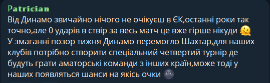 ℙ𝕒𝕥𝕣𝕚𝕔𝕚𝕒𝕟: От Динамо конечно ничего не ждешь в ЕК, последние годы так точно, но 0 ударов в створ за весь матч это уже хуже некуда.