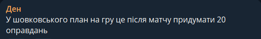 Ден: У Шовковского план на игру после матча придумать 20 оправданий.