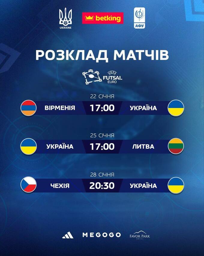 Чемпионат Европы 2026 по футзалу пройдет в Литве, Латвии и Словении с 21 января по 7 февраля. Лучшие две команды из группы выйдут в четвертьфиналы.