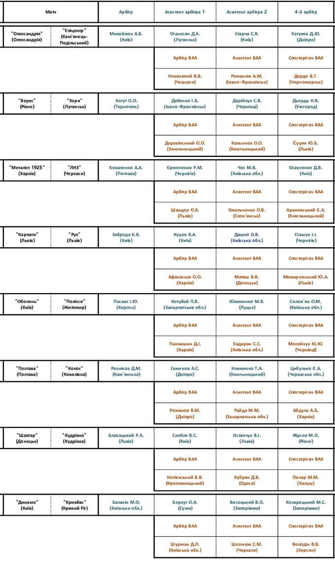 Комитеты Украинской ассоциации футбола назначили официальных лиц.