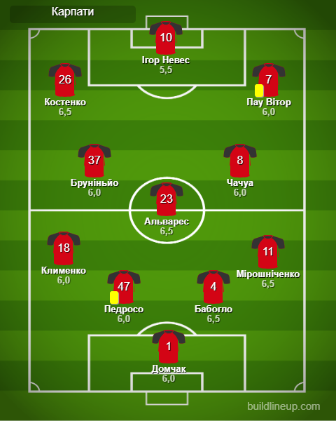 «Карпаты» (замены): Шах – 6,0, Танда – 5,5, Краснопир – 6,0, Сыч – 6,0, Фабиано – 5,5
