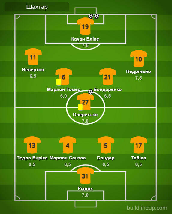 «Шахтёр»: Резник – Педро Энрике, Марлон Сантос, Бондар (Матвиенко, 84), Тобиас – Марлон Гомес (Иссаки, 63), Очеретько (Назарина, 74), Бондаренко (Глущенко, 63) – Невертон, Кауан Элиас, Педриньо (Эгинальду, 63).