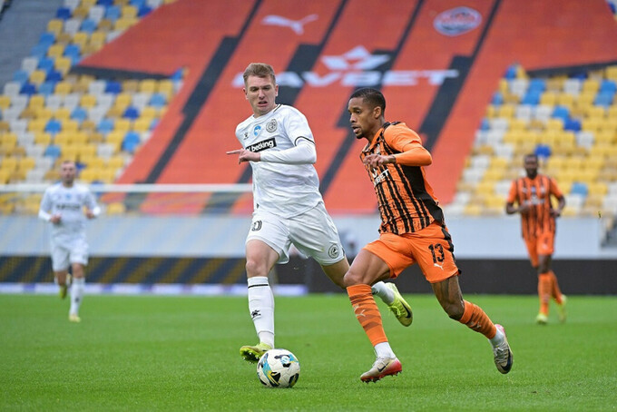 «Кудровка» могла ответить мгновенно: Легостаев выбил мяч у лицевой линии и передал в центр штрафной на Сторчоуса, но удар прошёл выше ворот. После этого моменты гостей закончились, а «Шахтёр» продолжил доминировать.