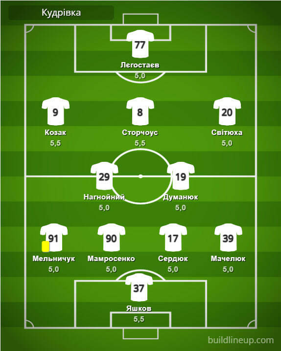 «Кудровка»: Яшков – Мельничук (Гусев, 76), Мамросенко, Сердюк, Мачелюк – Нагнойный (Матвеев, 68), Думанюк – Козак, Сторчоус (Демченко, 80), Свитюха (Коркишко, 46) – Легостаев (Овусу, 46).