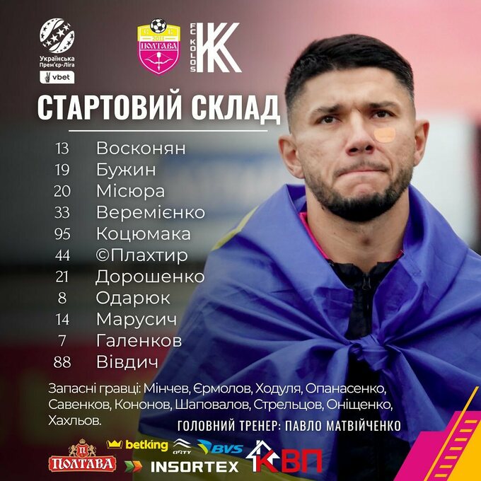 Названы стартовые составы на матч УПЛ между Полтавой и Колосом