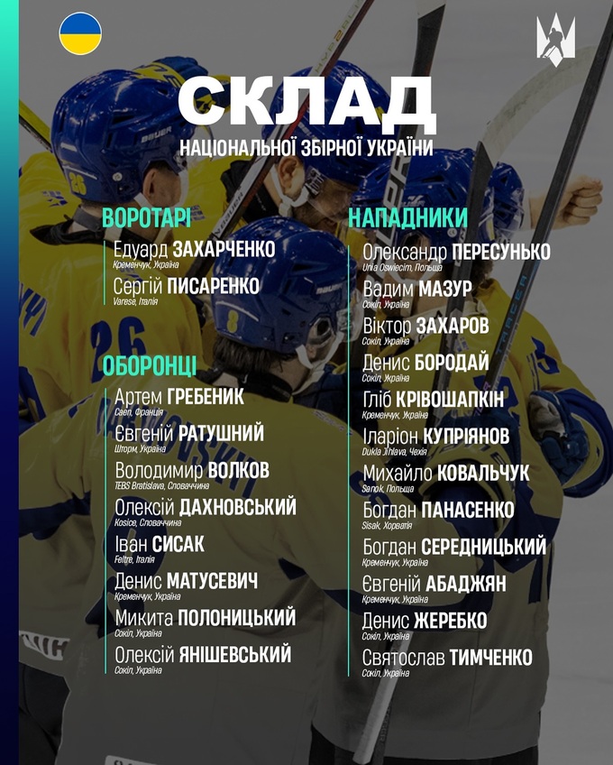 Защитники: Гребеник (Кан, Франция), Волков (Братислава, Словакия), Дахновский (Кошице, Словакия), Матусевич (Кременчуг), Ратушный (Шторм), Сысак (Фелтре, Италия), Полоницкий, Янишевский (Сокол).
