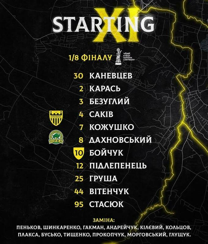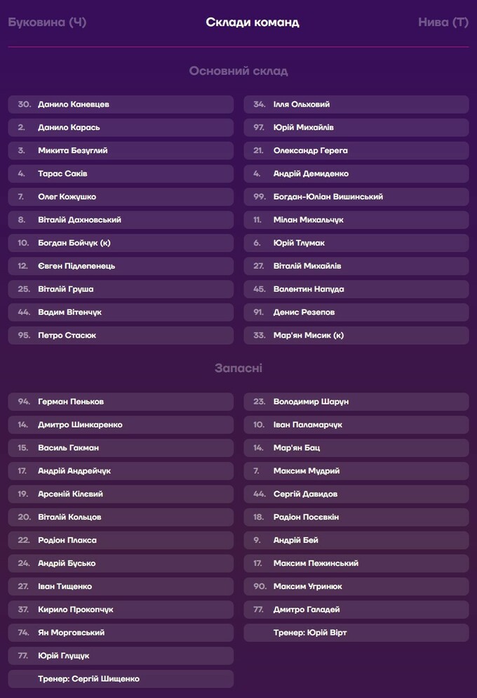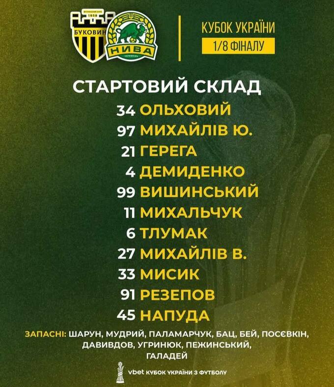 Шищенко vs Вирт. Названы составы на матч Буковина – Нива Т в Кубке Украины