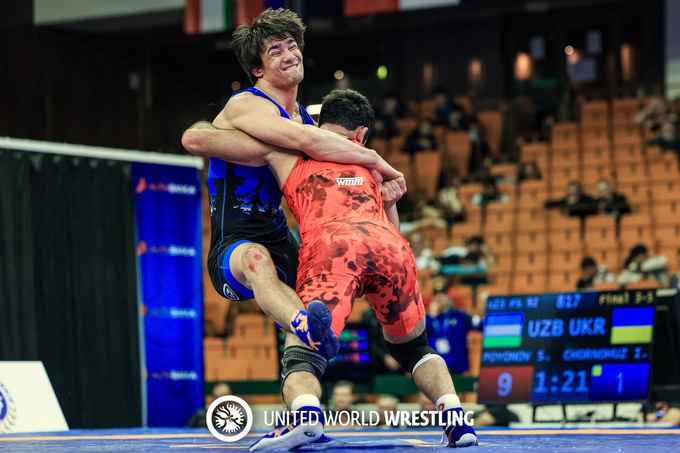 Кроме братьев Абрамовых, в бронзовом финале боролся тяж Иван Черногуз (до 92 кг). Причем боролся Иван достаточно качественно. В первой схватке он досрочно, 10:0, победил призера двух чемпионатов Азии U20 Айбека Айтбекова из Казахстана. После этого последовала еще одна досрочная победа 11:0 над бронзовым призером юниорского чемпионата Европы-2023 Даниэлем Фишером из Германии. В четвертьфинале Черногуз разгромил представляющего Грецию чемпиона Европы U23 Гиви Блиадзе. Вот только в полуфинале против иранца Мохаммадмобина Азими подобраться к сопернику украинец не смог и проиграл 1:12. В схватке за третье место против действующего чемпиона Азии и мира U20 Шерзода Пойонова наш борец также шансов не имел - 1:11.