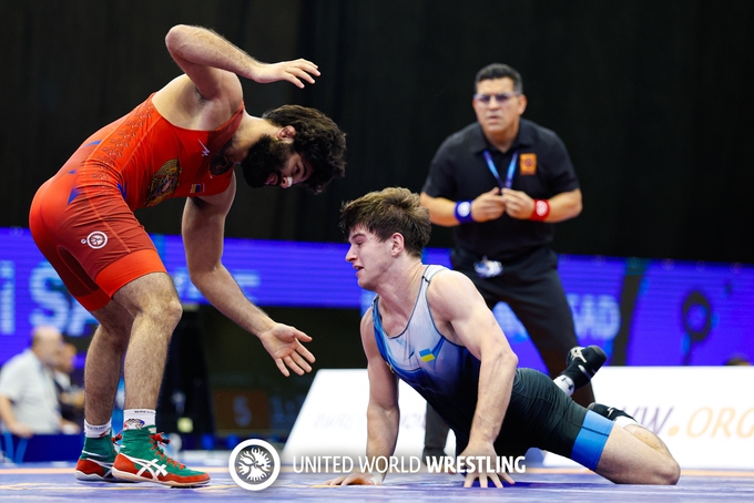 Для представителя Киевщины Нарека Погосяна (до 70 кг), который на нынешнем ЧЕ в этой возрастной группе завоевал бронзу, мировое первенство завершилось после первой же схватки, которую он досрочно 0:10 проиграл действующему победителю Панамериканского чемпионата U23 Орисланди Пердомо с Кубы.