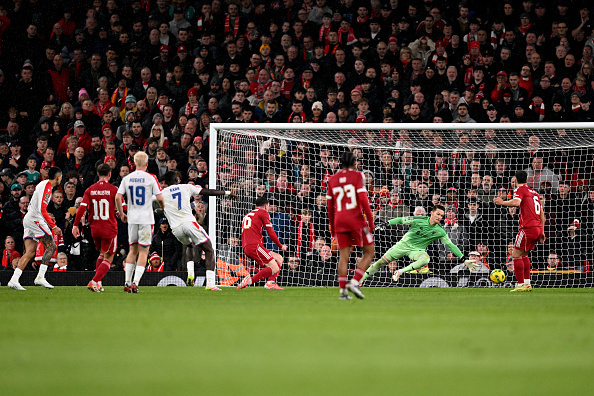 Ливерпуль проигрывает Кристал Пэлас по итогам первого тайма матча 1/8 финала Кубка английской лиги 2025/26.