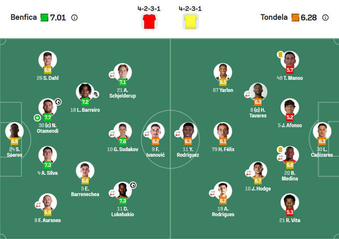 Оценки матча «Бенфика» – «Тондела» от SofaScore