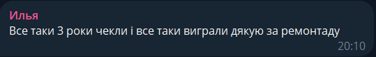 Илья: Все же три года ждали и все же выиграли, спасибо за ремонтаду.