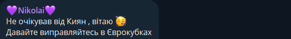 Nikolai: Не ожидал от киевлян, поздравляю. Давайте исправляйтесь в Еврокубках.