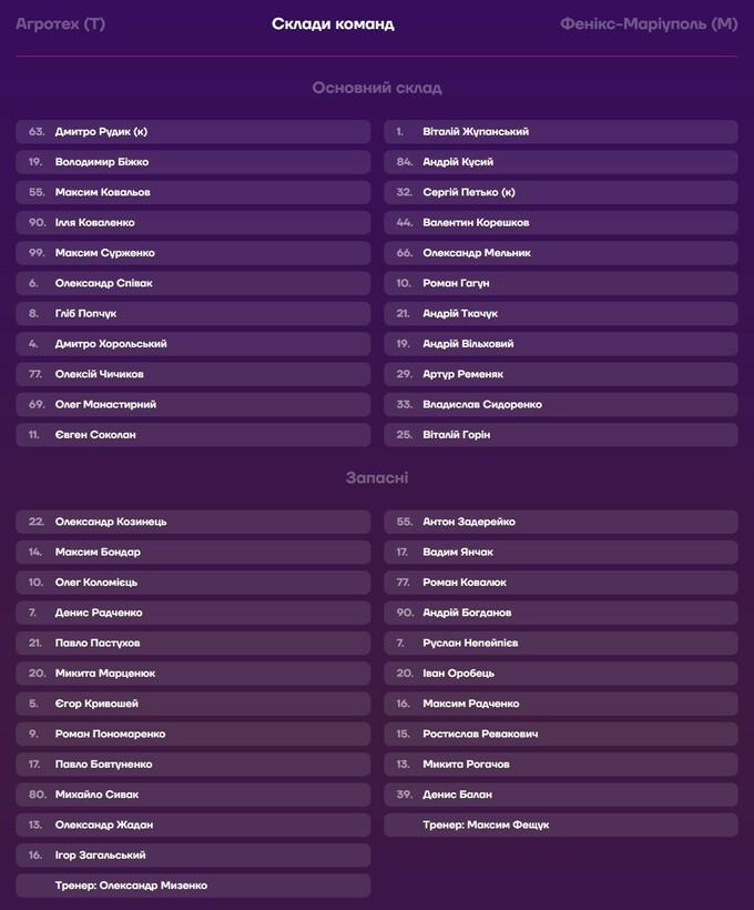 Агротех и Феникс-Мариуполь назвали составы на матч 1/8 финала Кубка Украины