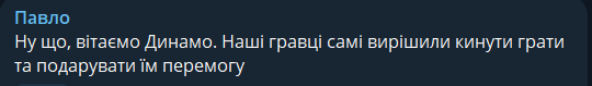 Павло: Ну что, поздравляем Динамо. Наши игроки сами решили бросить играть и подарить победу.