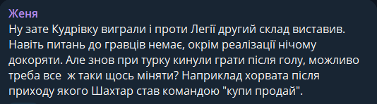 Женя: Ну, зато Кудровку выиграли и против Легии второй состав выставил. Даже вопросов к игрокам нет, кроме реализации нечем упрекать. Но снова при турке бросили играть после гола, может, надо все же что-то менять? Например хорвата после прихода которого Шахтер стал командой «купи-продай».