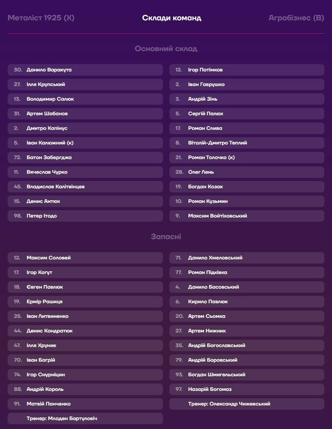 Стартовые составы на матч «Металлист 1925» – «Агробизнес»: