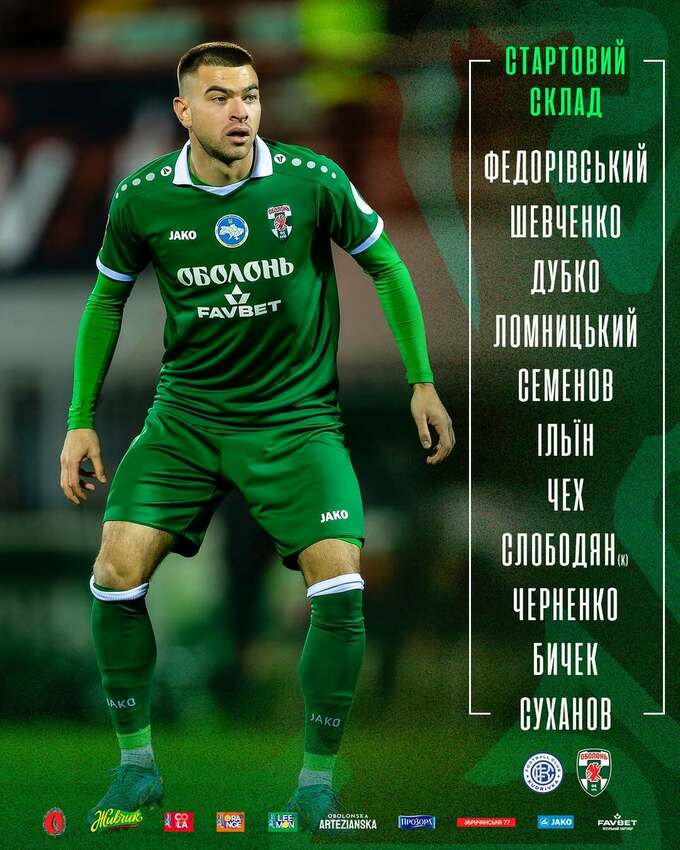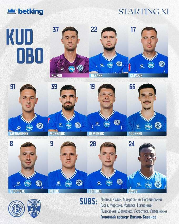 Стартовые составы на матч чемпионата Украины Кудровка – Оболонь