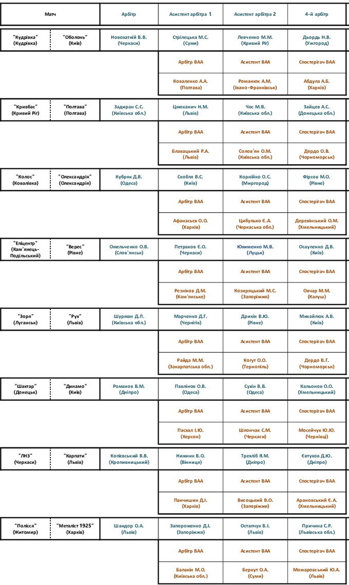 УПЛ. 11-й тур. Судейские назначения