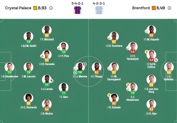 Оценки матча «Кристал Пэлас» – «Брентфорд» по версии SofaScore