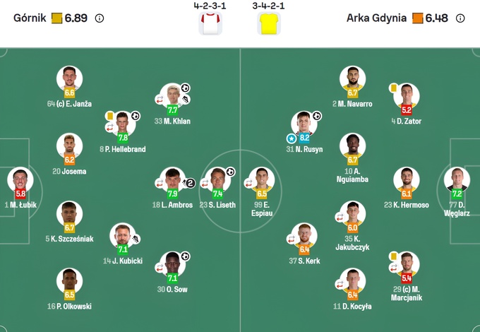 Оценки матча «Гурник» Забже – «Арка» Гдыня по версии SofaScore
