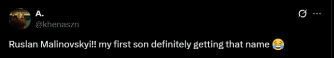 A.: Руслан Малиновский!! Мой первый сын точно получит это имя.