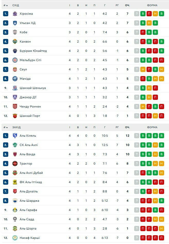 Аль-Хиляль набрал 12 очков из 12 и является лидером Западной зоны, Аль-Ахли идет вторым (10 баллов), а Аль-Иттихад – на 6-й позиции (6 пунктов).