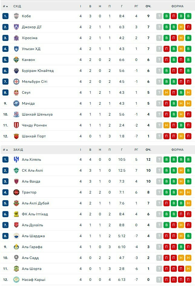 Таблица Лиги чемпионов Азии. Завершен 4-й тур: кто в лидерах на экваторе?