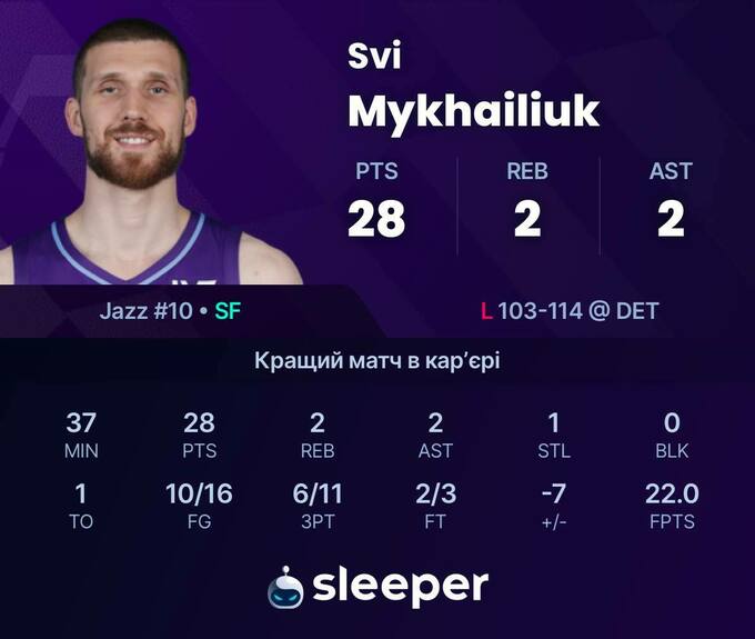 Обновил рекорд. Михайлюк провел безумный матч в НБА, но Юта проиграла