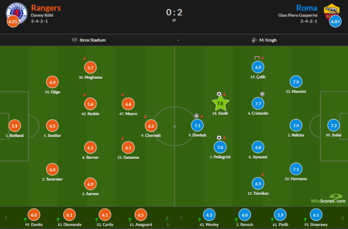 Голевой передачей на второй гол римлян отметился украинский нападающий Артем Довбик. В целом его действия в этом матче оценили в 7,1 балла, что является одной из самых высоких оценок среди игроков обеих команд.