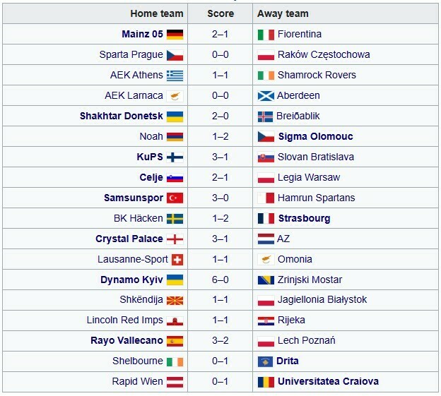 Донецкий Шахтер в условно домашнем матче в Кракове переиграл исландский Брейдаблик (2:0). Киевское Динамо в Люблине разгромило Брейдаблик (6:0).