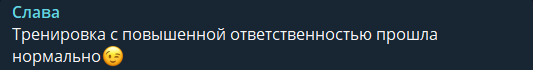 Слава: Тренировка с повышенной ответственностью прошла нормально.