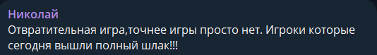 Николай: Отвратительная игра, точнее игры просто нет. Игроки которые сегодня вышли полный шлак!!!