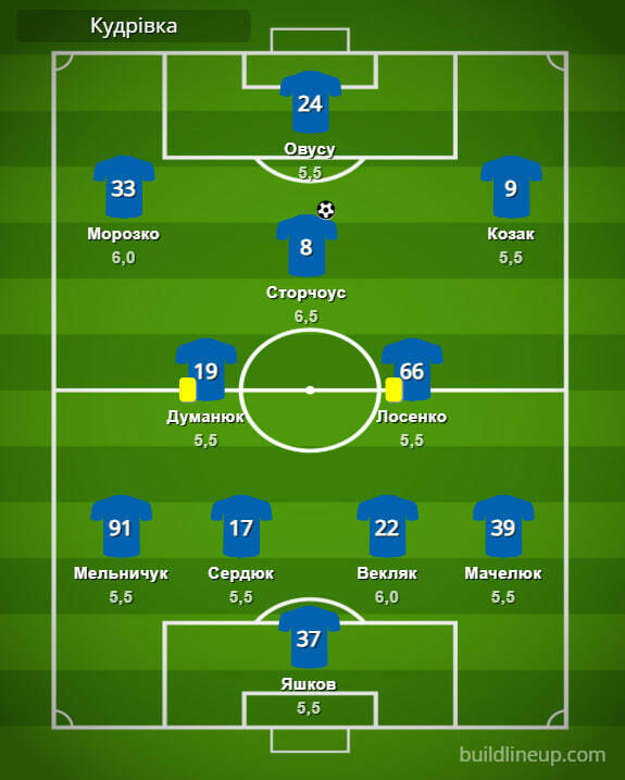 «Кудровка»: Яшков — Мельничук, Сердюк, Векляк, Мачелюк — Думанюк, Лосенко — Морозко (Пушкарёв, 76), Сторчоус (Литовченко, 62), Козак (Свитюха, 76) — Овусу (Легостаев, 46).