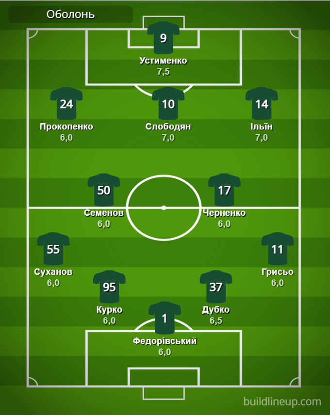 «Оболонь»: Федоривский – Суханов, Курко, Дубко, Грисьо (Е. Пасич, 72) – Семенов, Черненко (Ломницкий, 90+2) – Прокопенко, Слободян (Кулаковский, 72), Ильин (Мединский, 64) – Устименко (Теслюк, 64).