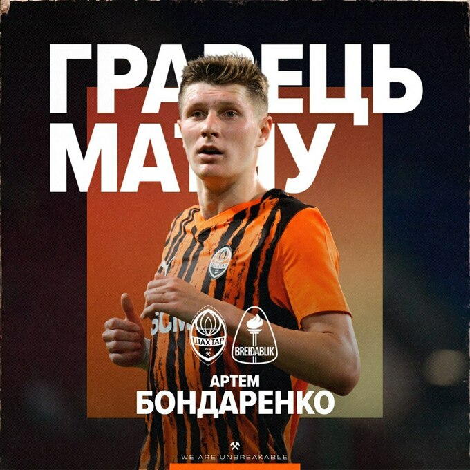 Хавбек Артем Бондаренко стал лучшим игроком матча с Брейдабликом по версии болельщиков Шахтера.