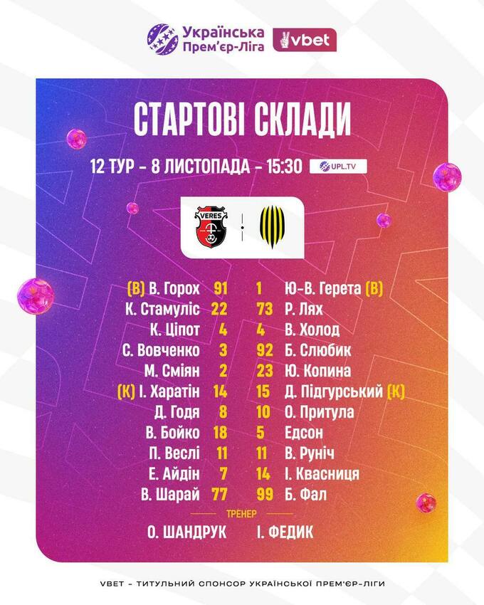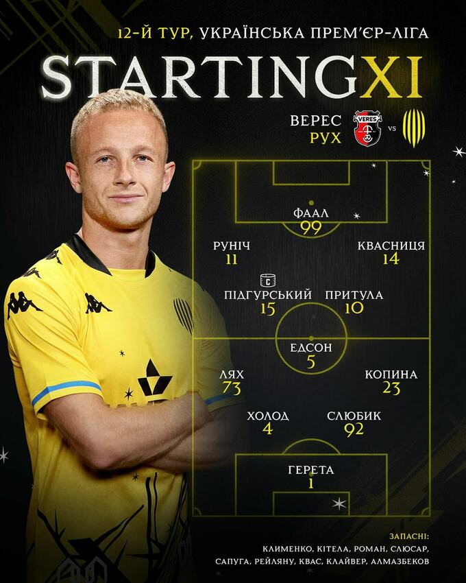 Верес и Рух назвали стартовые составы на матч 12-го тура УПЛ