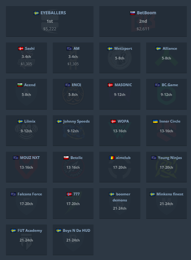Последний раз EYEBALLERS выигрывали LAN-турнир еще в 2023 году на Svenska Cupen, и с того состава лишь JW остался в команде.