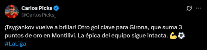 Carlos Picks: Цыганков снова сияет! Еще один решающий гол для «Жироны», получившей 3 золотых очка. Эпический дух команды остается неизменным.