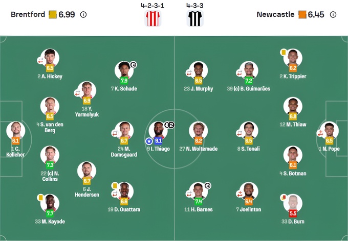Оценки матча «Брентфорд» – «Ньюкасл» от SofaScore