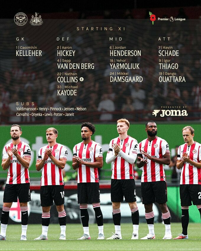 Стартовые составы на матч Брентфорда и Ньюкасла