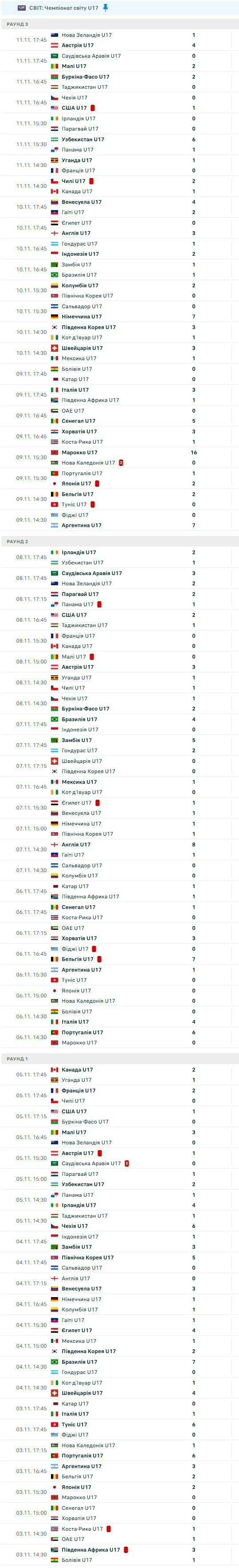 ЧМ-2025 U-17. Завершен групповой раунд, определены пары 1/16 финала