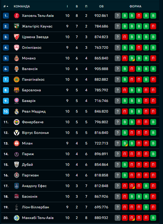 После этого игрового дня в Евролиге определился единоличный лидер. Им стал «Хапоэль» Тель-Авив, который в номинально домашнем матче разгромил «Басконию». Команда Итудиса выиграла все четверти в матче, попала 12/21 трехочковых и победила со счетом 114:89.