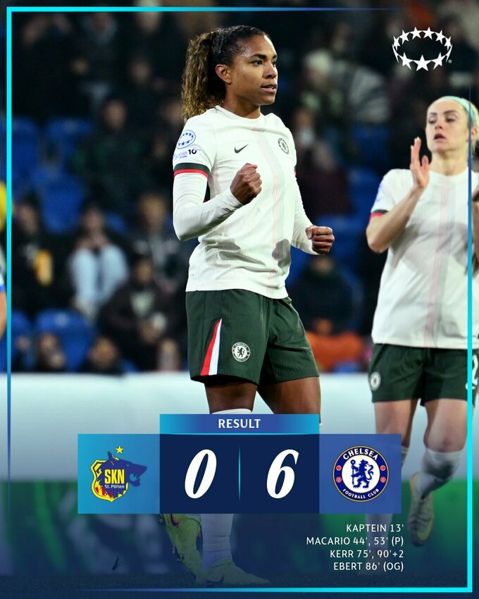 В турнирной таблице лидируют: Лион (9 очков), Челси, Реал (по 7), Барселона, Вольфсбург, Манчестер Юнайтед (по 6).