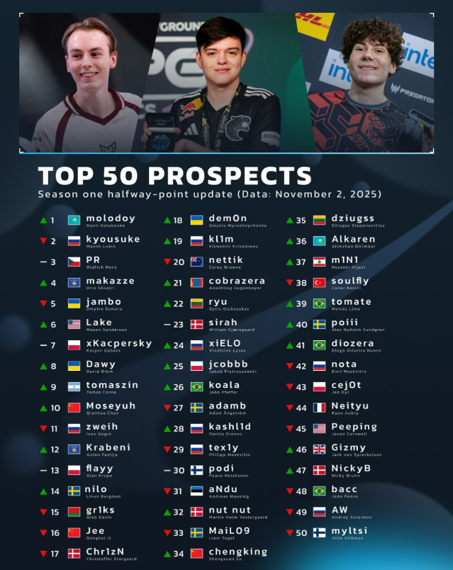 HLTV обновили свой Prospect Ranking, в который вошли самые перспективные игроки молодого поколения. Обновление основано на статистических данных с 1 июля по 2 ноября, а также учитывает силу соперников и уровень турниров.