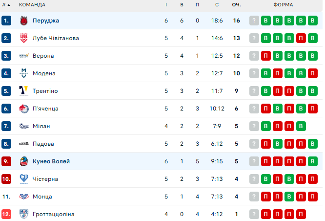 После этого матча «Перуджа» возглавляет таблицу, оставаясь единственной непобедимой командой.