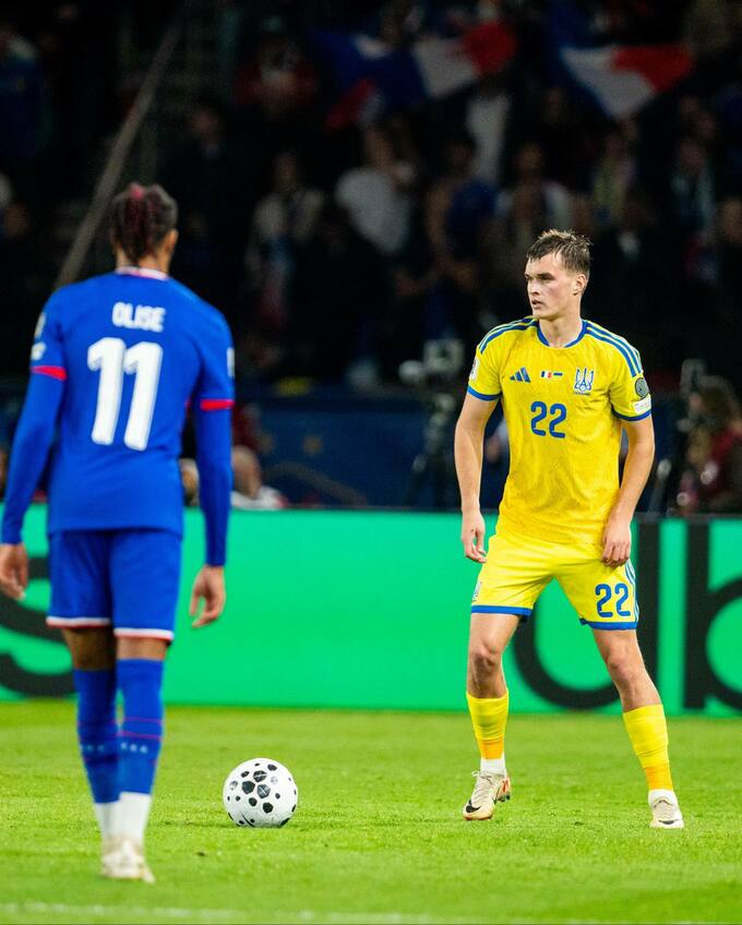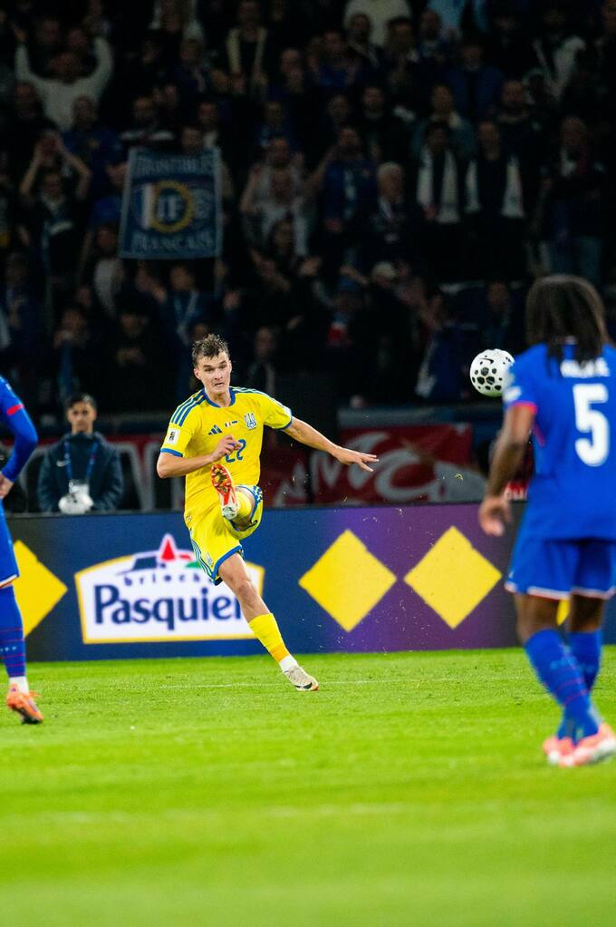 Михавко вышел в стартовом составе в матче отбора ЧМ-2026 против Франции. 20-летний дебютант провел на поле 74 минуты.