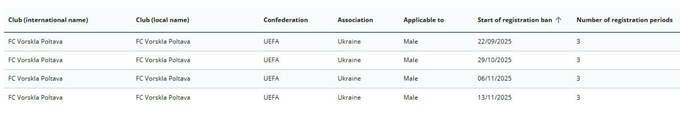 Украинский клуб получил четвертый трансферный бан за полтора месяца