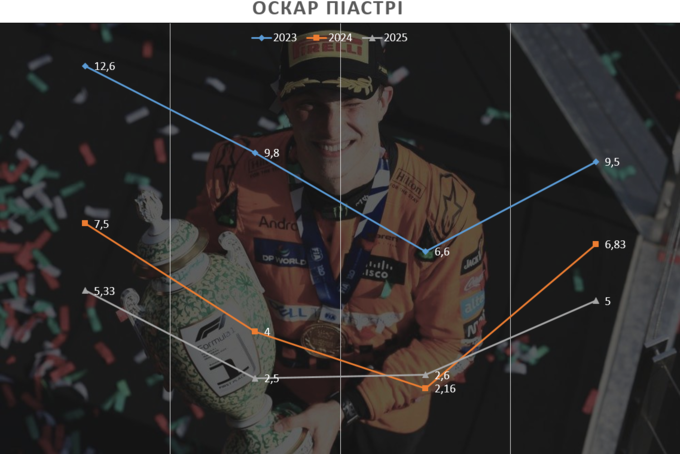 Первый и, на мой взгляд, самый важный – моральная устойчивость. Ландо Норриса уже не первый год обвиняют в том, что он якобы не способен бороться с давлением и ошибается в решающие моменты. Похоже, на этот раз подобное давление ударило по Оскару. Он получил большой отрыв, а вместе с ним – ожидания: мол, по логике сезона он должен набрать больше очков, чем напарник, который даже не всегда доходил до финиша.