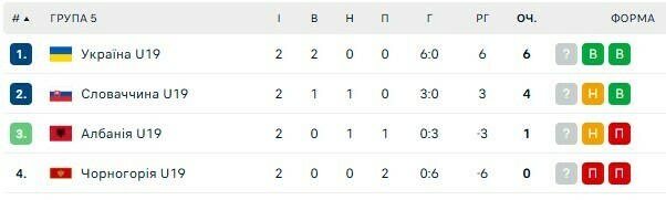 Турнирное положение: Украина (6 очков), Словакия (4), Албания (1), Черногория (по 0).